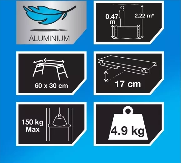 MACALLISTER WYMIARY: 60 cm x 30 cm WYSOKOŚĆ ROBOCZA : 47cm KONSTRUKCJA : ALUMINIUM/STAL
